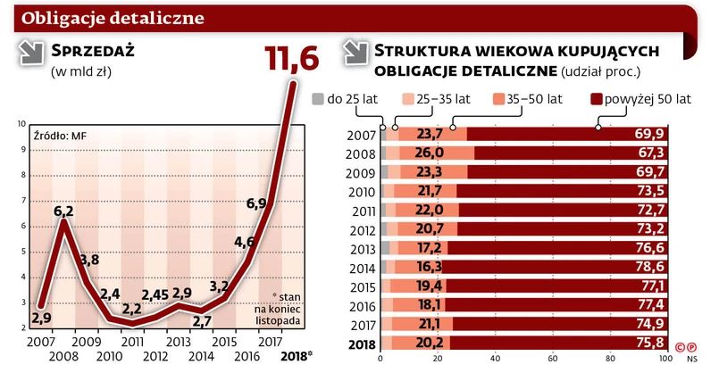 Przez 11 miesięcy tego roku Ministerstwo Finansów sprzedało obligacje przeznaczone dla inwestorów indywidualnych o wartości przekraczającej 11,6 mld zł. Ostatni miesiąc zapewne poprawi ten wynik. Tym samym można zakładać, że rok do roku sprzedaż będzie wyższa o przeszło 75 proc.