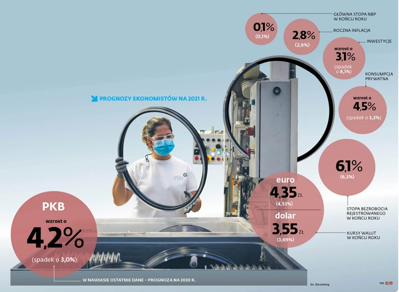 W 2021 r. są szanse na wzrost gospodarczy przekraczający 4 proc. – a zdaniem niektórych analityków nawet powyżej 5 proc. Bezrobocie spadnie, inflacja przyśpieszy tylko nieznacznie, a złoty zyska na wartości. Tak wskazują wyniki ankiety przeprowadzonej przez DGP wśród ekonomistów 15 krajowych instytucji.