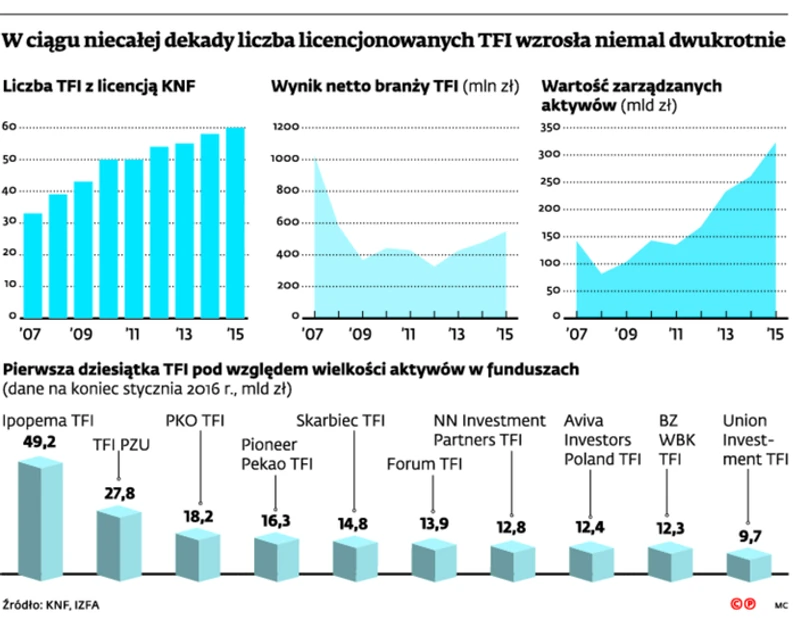 – To efekt rosnącej zamożności Polaków. Mamy coraz większe oszczędności, co widać po rosnących depozytach bankowych, które są jednak bardzo słabo oprocentowane. Inwestorzy poszukują lepszych stóp zwrotu, co napędza rynek TFI i funduszy – wskazuje Grzegorz Witkowski, prezes Insignis TFI, które stara się o zezwolenia KNF na prowadzenie działalności, a utworzone zostało w maju 2015 r.